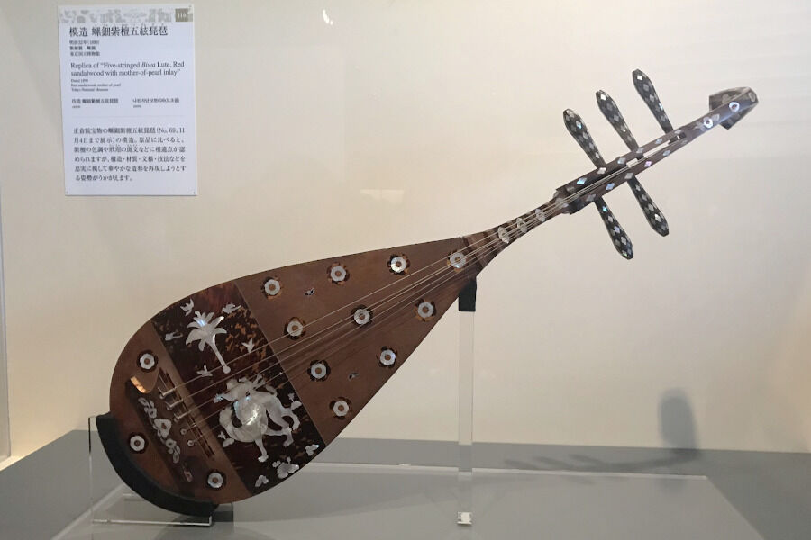 四弦の琵琶もあって、こちらは胴の絵の復元がとてもきれいな色で、こういう復元品模造品を併置するのは本当に良い方法だとありがたかった。